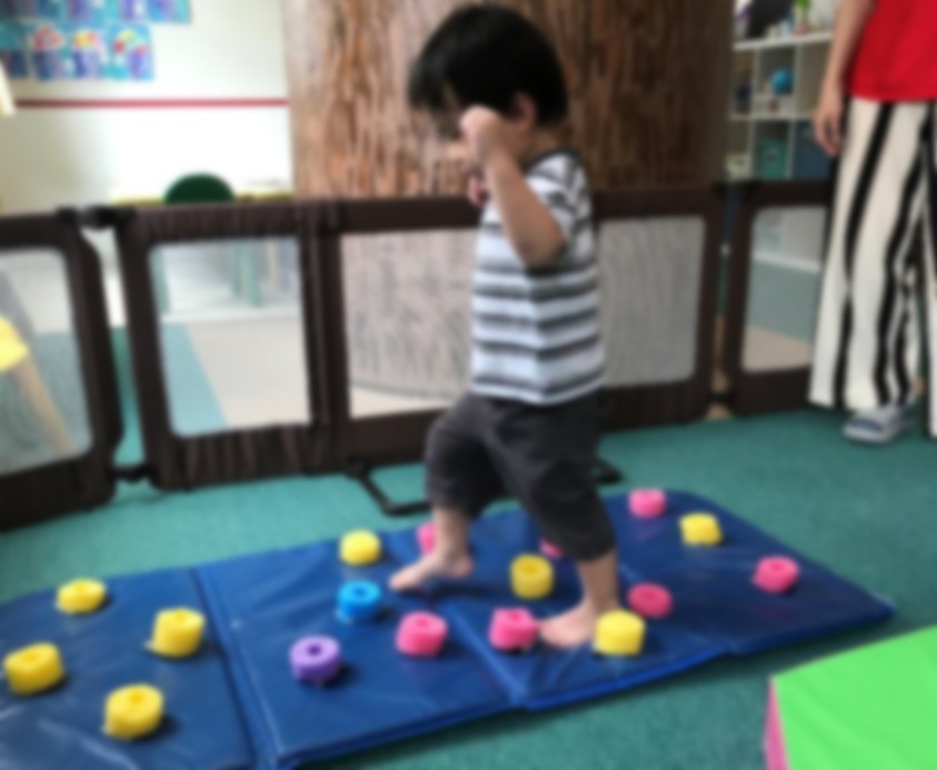 スポンジをマットに貼って、足の裏を刺激するのも楽しいです♪